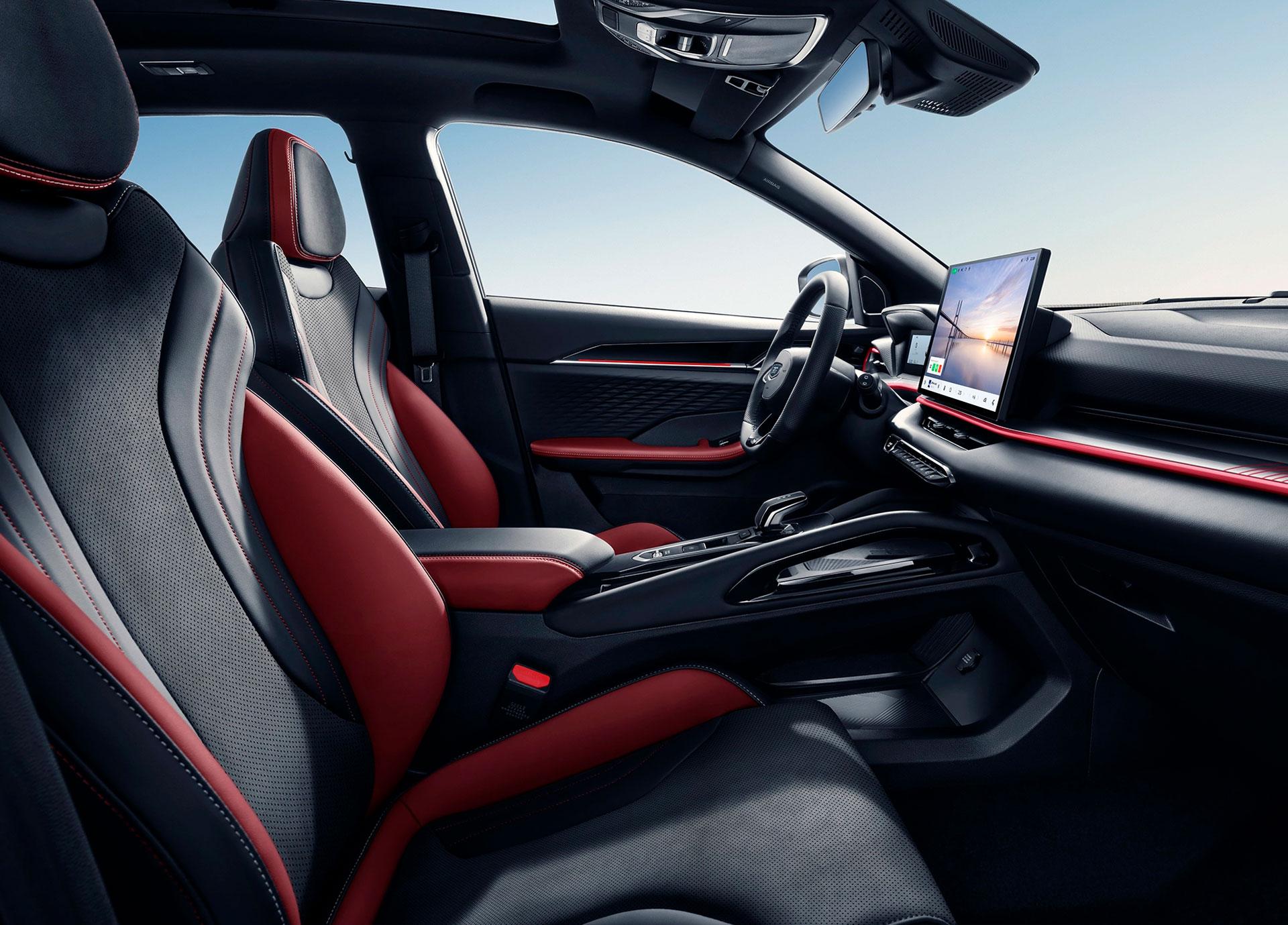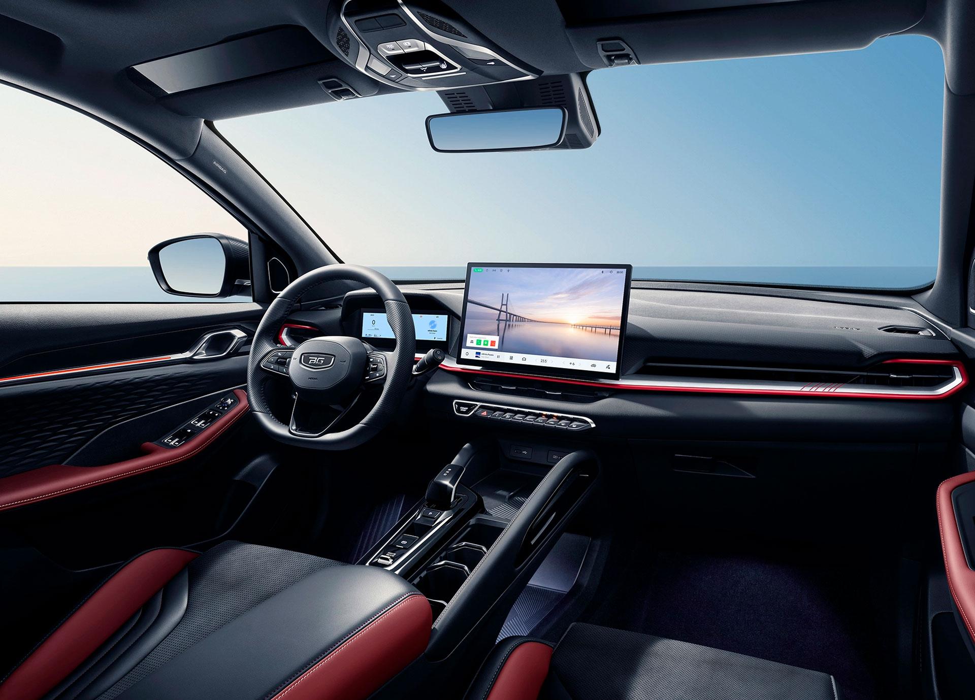 Новый Belgee X50+ отличается изысканным интерьером в чёрной или чёрно‑красной цветовой гамме в зависимости от комплектации. Простор и эргономичность создают идеальные условия для комфортной поездки, а современный дизайн гармонично сочетается с безупречным исполнением всех элементов.